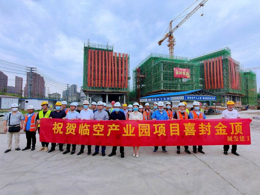 黃石臨空商務產業(yè)園獨棟企業(yè)總部項目部分樓棟喜封金頂