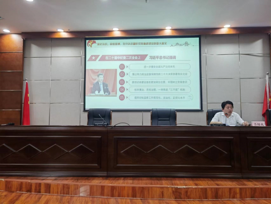 呂紹成向全體黨員講授題為《堅(jiān)定理想信念嚴(yán)守紀(jì)律規(guī)矩做一名合格的共產(chǎn)黨員》廉政黨課。他在黨課中從深化認(rèn)識,高度重視,充分認(rèn)識做好黨風(fēng)廉政建設(shè)的重大意義;堅(jiān)定理想,對黨忠誠,做政治過硬的合格黨員;嚴(yán)守規(guī)矩,敬畏法紀(jì),做嚴(yán)于律己的合格黨員;立足崗位,敢于擔(dān)當(dāng),做敬業(yè)奉獻(xiàn)的合格黨員四個方面深入解析。結(jié)合現(xiàn)實(shí)生活反面典型案例剖析,強(qiáng)調(diào)黨員干部要清醒認(rèn)識當(dāng)前反腐敗斗爭形勢,時刻牢記在任何時候都要遵紀(jì)守法,強(qiáng)化紅線意識,筑牢廉潔自律防線。