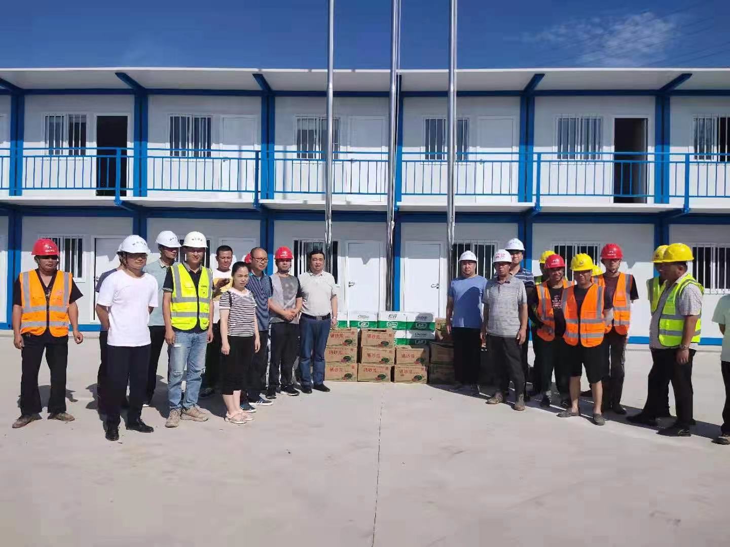 在項(xiàng)目現(xiàn)場(chǎng),公司領(lǐng)導(dǎo)親切慰問一線工作人員,叮囑他們采取“做兩頭,歇中間”的方式進(jìn)行施工;要求各項(xiàng)目部對(duì)一線工人進(jìn)行防暑降溫知識(shí)宣傳,并開展安全隱患排查治理工作,確保高溫天氣下項(xiàng)目的施工安全。